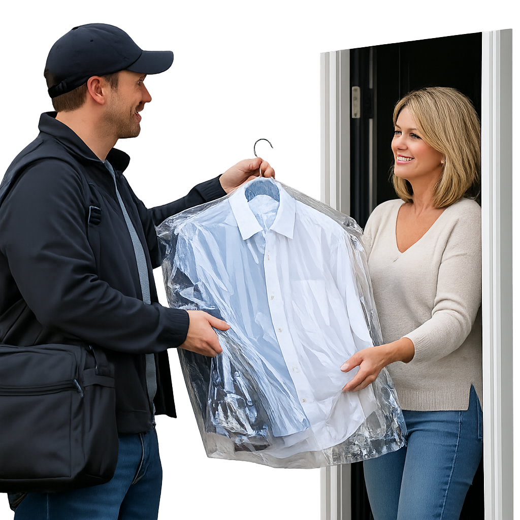 DoorDash or Uber drivers will bring your order to our store for garment care and processing.